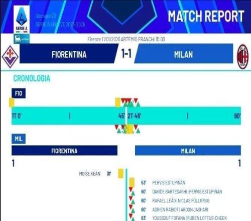 米兰圈在佛罗伦萨1-1战平米兰后,裁判报告显示阿莱格里遭到驱逐。裁判报告底部显示,佛罗伦萨主帅瓦诺利和米兰...